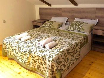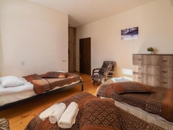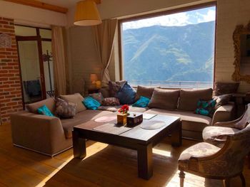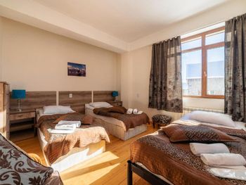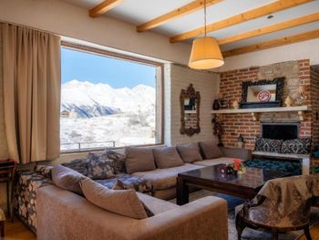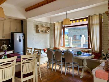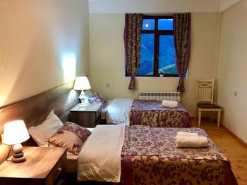 В доме есть все необходимое для комфортного размещения компанией. Номера чистые, владельцы всегда на связи и готовы помочь с трансфером, информацией по курорту и т/д. Фишка коттеджа большой холл с панорамными окнами и видом на горы. Отличный вариант жля компании.